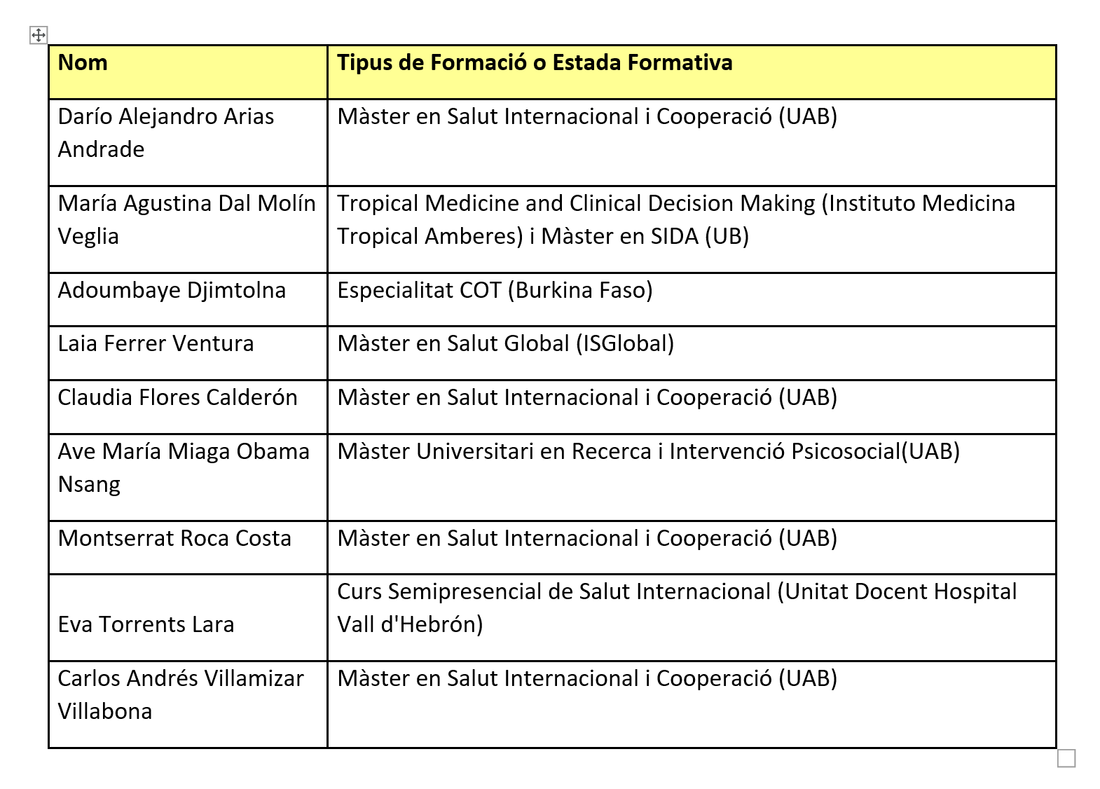 - 5 són pel Màster de Salut Internacional i Cooperació de la UAB