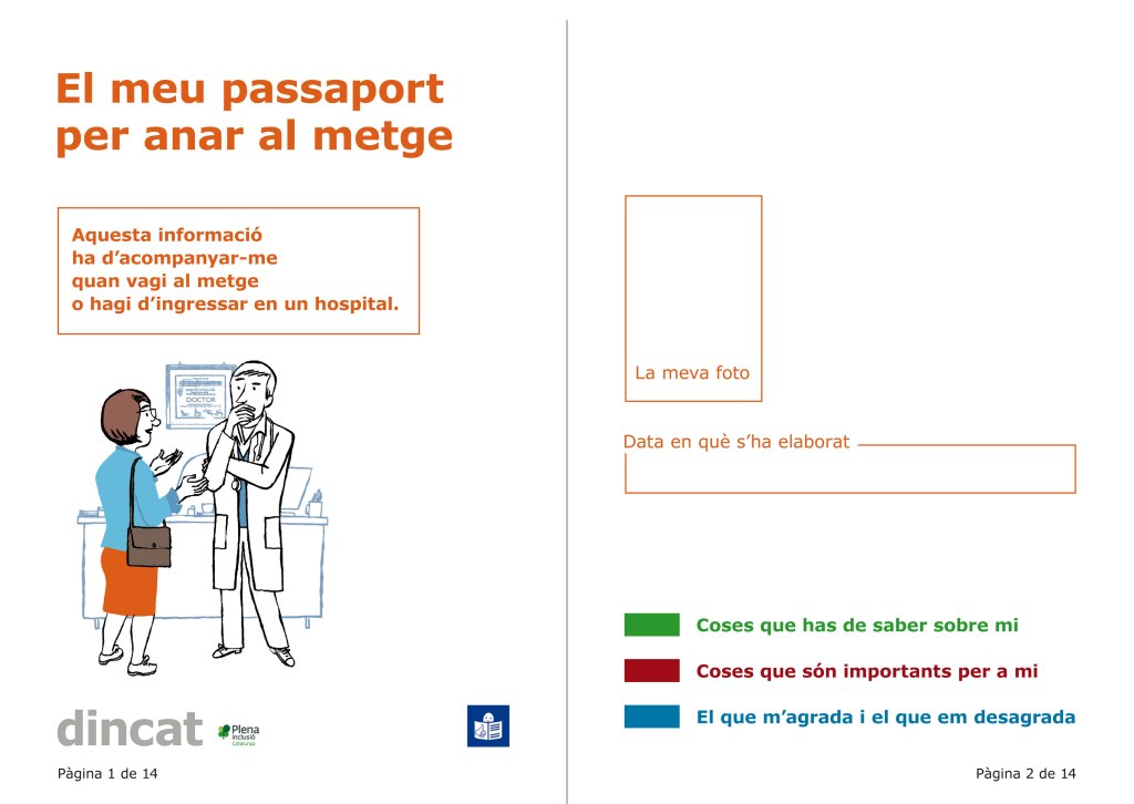 És com un llibret amb tot un seguit d’informació de la persona que el porta que pot facilitar molt la comprensió del metge o de l’equip mèdic en relació amb aquella persona: què el posa nerviós i què pot provocar-li un problema de conducta, com li agrada que el tractin i que s’adrecin a ell, quines necessitats té en termes afectius… És una adaptació d’un model anglès. Al nostre servei fa temps que l’utilitzem quan un pacient ha d’anar a l’hospital, sobretot quan ha d’ingressar, perquè allà tinguin coneixement de com és. I quan ell no pot estar acompanyat, el passaport pot explicar per ell què és el que necessita. Al metge li cal informació per prendre decisions. No només la informació clínica i mèdica que pot trobar a la Història Clínica Compartida, sinó sobre com és aquella persona.