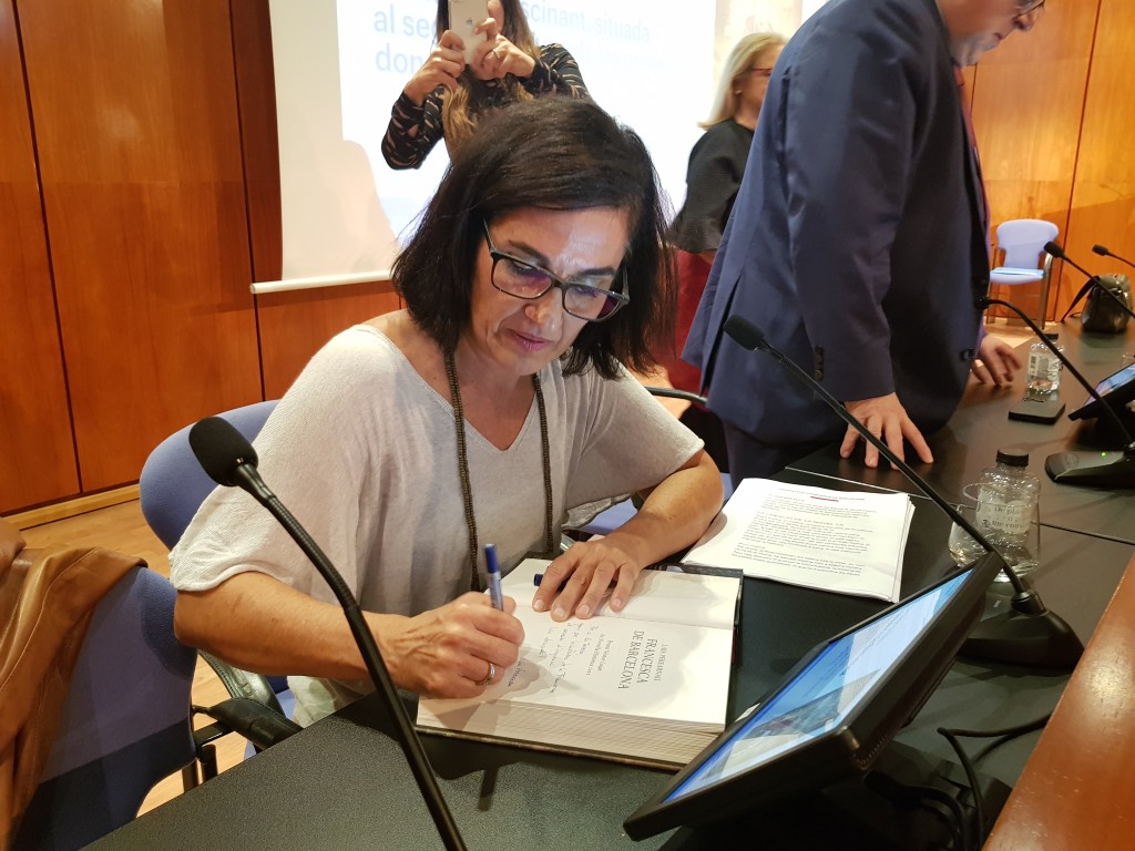L’autora de ‘Francesca de Barcelona’ signant exemplars durant la presentació del llibre al CoMB
