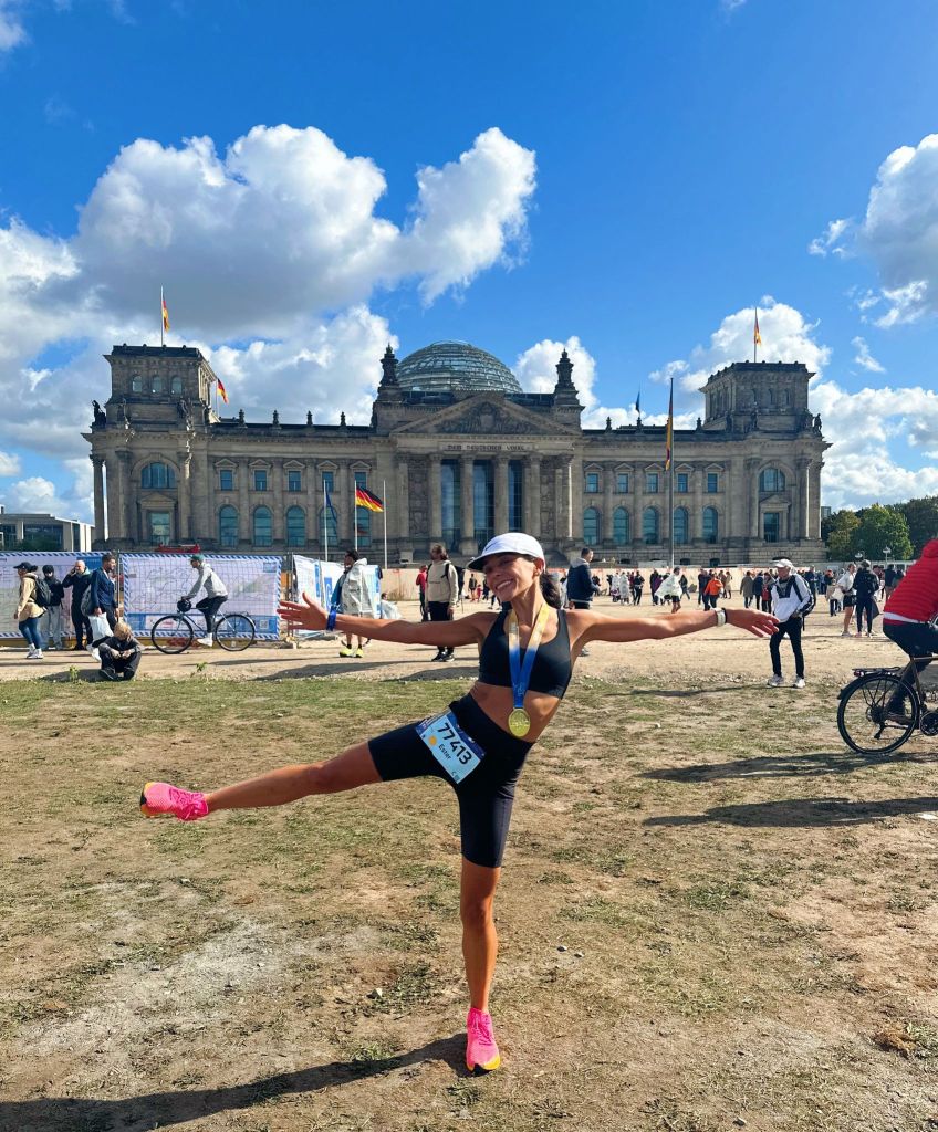 Fins ara estava amb maratons. N’he fet tres. l’últim a Berlín l’octubre passat. Allà em va anar molt bé, vaig fer millor marca i n’estic molt contenta. L’any passat vaig començar a fer triatlons i aquest juliol faré l’Iron Man de Vitòria, que combina les tres disciplines. Encara se m’està fent una mica difícil compaginar-ho tot perquè són tres esports, però, de moment, hi estic molt motivada.